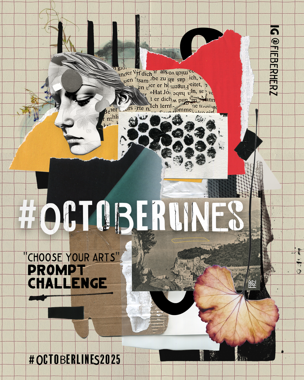 #octoberlines ist eine „choose your arts“-Prompt-Challenge für alle, die gerne zwischen kreativen Welten wandern. Sie richtet sich an multidisziplinäre Künstler*innen, also an Menschen, die sich so gar nicht auf ein Medium festlegen wollen. Denn im Herzen dieser Challenge steckt die Liebe zu all den verschiedenen Künsten!